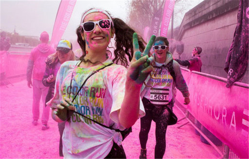 彩色跑参赛者穿着白色T恤,跑步过程中经历数个不同的颜色站点,彩色粉末会铺天盖地而来,在这个“彩色世界”,在这里,